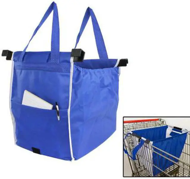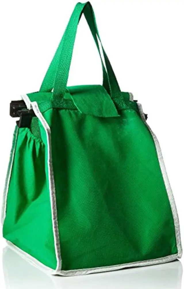 Do away with plastic shopping bags that rip. These eco-friendly reusable grocery bags expand to hold up to 40 lbs of groceries. Each bag clips onto the side of your shopping cart so you can add items quickly and easily. Feature a velcro closure as well an outer pocket that's perfect for wallets coupons and recipes. Folds flat for easy storage. Youll get two. Assorted colors will ship. Includes 2- Clip -to- Cart Reusable Shopping Bags