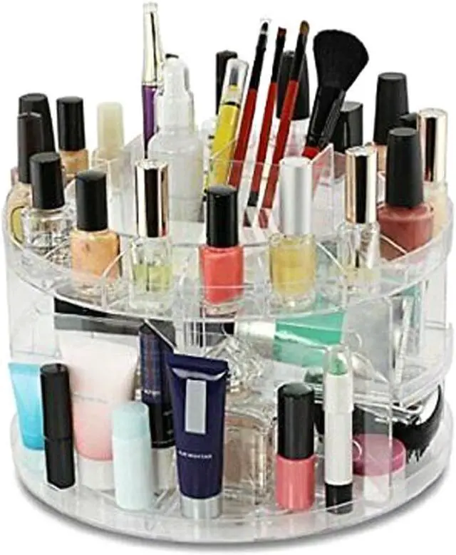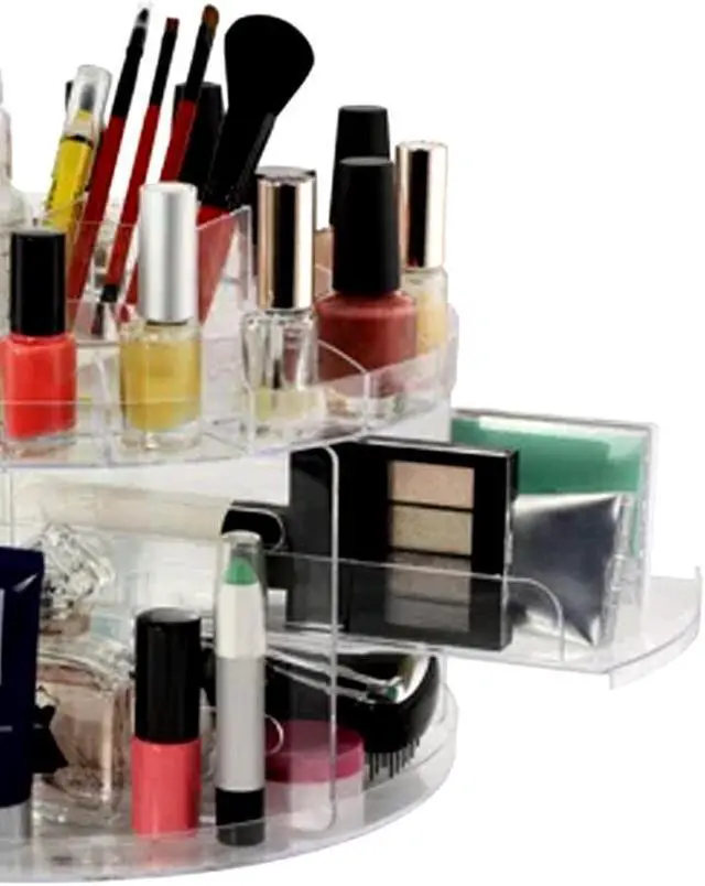 Total Vision Acrylic Jewelry & Cosmetic Storage Organizer! Carousel rotating display box. Experience impeccable organization with the acrylic jewelry & cosmetic storage organizer. Crafted with crystalclear acrylic this versatile solution boasts customizable compartments providing a stylish and efficient home for your favorite accessories and cosmetics. Elevate your space and streamline your routine effortlessly. Rotates 360° and holds up to 200 items with a slideout compartment. A recommendation (not a requirement) after putting the carousel together take it back apart so you know how to construct it quickly. Clear