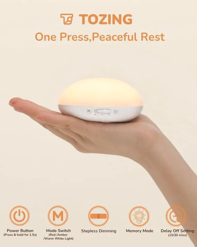 TOZING Baby Night Light with Intuitive 3-Button Physical Controls: Back to basics design features side-mounted tactile buttons that fit the natural curve of your hand for comfortable grip, avoiding accidental activation during nighttime useideal nursery night light for babys room.