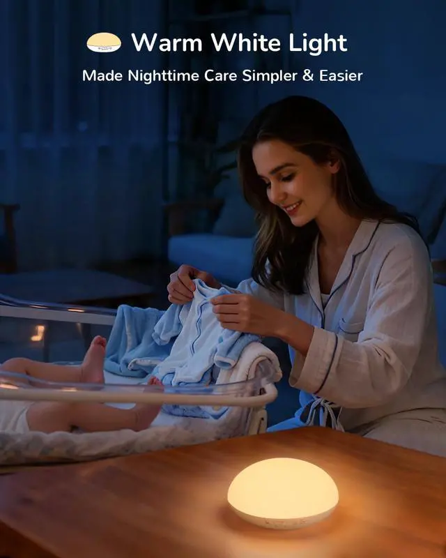 Nursery Night Light Multi-Scenario Lighting: One-touch switch between cozy warm white, soft warm yellow and calming red; smooth dimming adapts perfectly to nighttime feeding, diaper changes and bedtime soothingultimate baby night light for all daily routines.