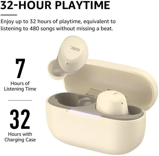 Stereo sound quality: TOZO A1 earbuds6mm diameter speaker presents a powerful and wide sound range, which makes the treble full of dynamics, and the bass powerful. Adopt advanced Bluetooth chip makes the sound played by the earphones much more beautiful and pleasant.