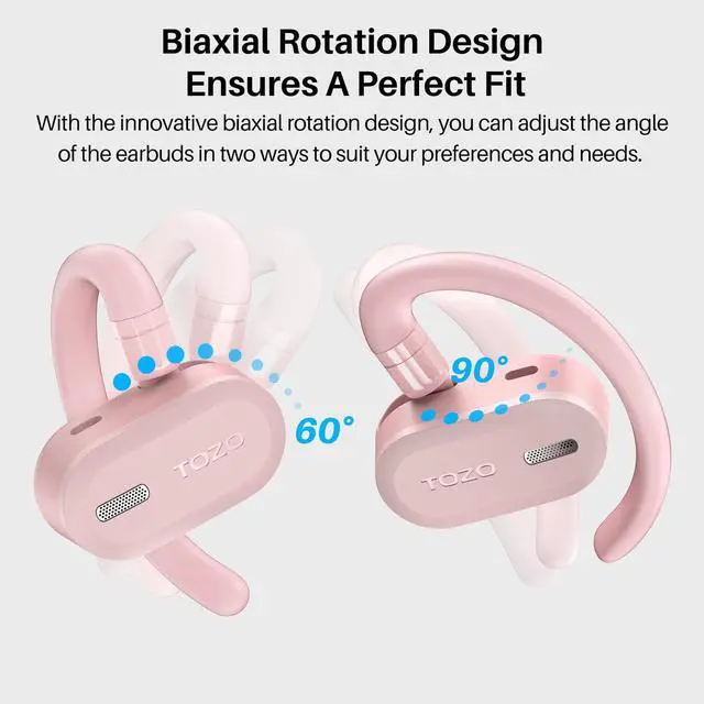 Dual-Axis Design & Multi-angle Adjustment: The TOZO OpenBuds feature a unique dual-axis design that allows for both horizontal and vertical adjustment, providing multiple angles for a customized fit to accommodate different ear shapes and sizes. With this design, you can adjust the ear cups to your preferred position, ensuring a comfortable and secure fit for extended listening sessions.