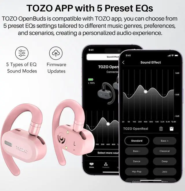 TOZO ORIGX Acoustic and APP: Experience superior sound quality and noise isolation with TOZO ORIGX algorithm-powered headphones. Enjoy more focused sound and stronger bass, while preventing sound leakage. With the added convenience of the TOZO APP, easily switch between five different EQ settings for the ultimate personalized listening experience.