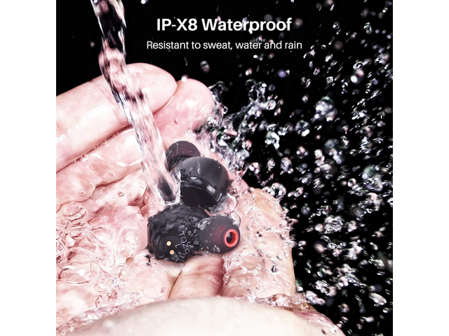 - [IPX8 waterproof] Earbuds and charging case inner Nano-coating makes it possible to waterproof for 1 meter deep for 30 minutes. It is suitable for sports to prevent water. Ideal for sweating it out at the gym. Earbuds and case even can be washed by water and soap.