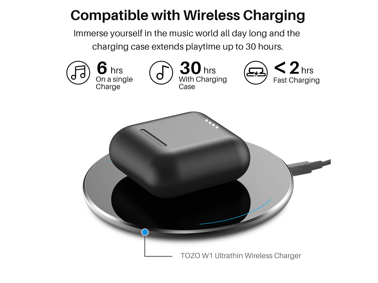 - [BLUETOOTH 5. 0] Adopt the advanced Bluetooth 5. 0 technology. TOZO T6 Support HSP, HFP, A2DP, AVRCP, which greatly improve the transmission speed and providing you with a low-latency listening experience.