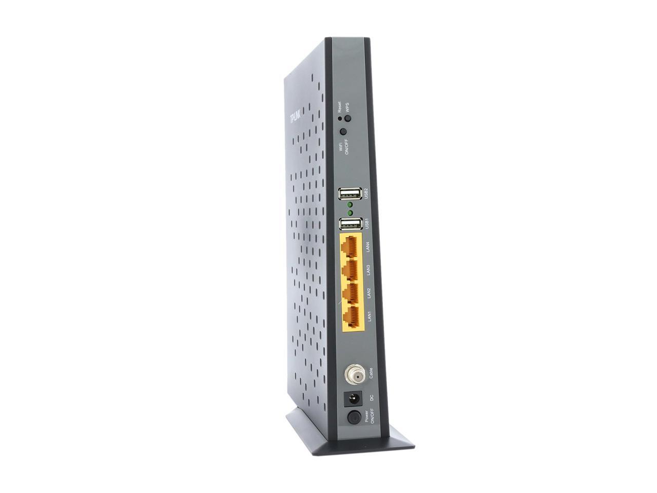 Features | Memory: 16 MB flash and 256 MB RAM Interface: 4 10/100/1000 Mbps RJ45 LAN Ports 1 Coax Port 2 USB 2.0 Ports Button: 1 Power On/Off Button 1 WPS Button 1 Wi-Fi On/Off Button 1 RESET Button External Power Supply: 12V DC / 3.5A Antenna Type: 6 internal antennas Radio Amplifiers: High-powered radio amplifiers Wireless Speeds: 2.4 GHz: Up to 450 Mbps 5 GHz: Up to 1300 Mbps Frequency: 2.4 GHz and 5 GHz Transmit Power: <20 dBm (EIRP) Wireless Functions: Enable / Disable Wireless Radio, WDS Bridge, WMM, Wireless Statistics Wireless Security: 64 / 128-bit WEP, WPA / WPA2, WPA-PSK / WPA2-PSK encryption, Wireless MAC Filtering Supports 802.11ac standard - the next generation of Wi-Fi Simultaneous 2.4 GHz 450 Mbps and 5 GHz 1300 Mbps connections provide a ultra-wireless experience 680 Mbps DOCSIS 3.0 Cable Modem provides 16X faster download speed than DOCSIS 2.0 for an ultra-fast performance Beamforming technology delivers a more targeted and highly efficient wireless connection Dual-core processor ensures no interruption when simultaneously processing multiple wireless or wired tasks Dual USB ports - Access files & media from networked devices or remotely via FTP server and share a printer locally Certified for XFINITY from Comcast, Time Warner Cable, Cablevision and Bright House Networks. |