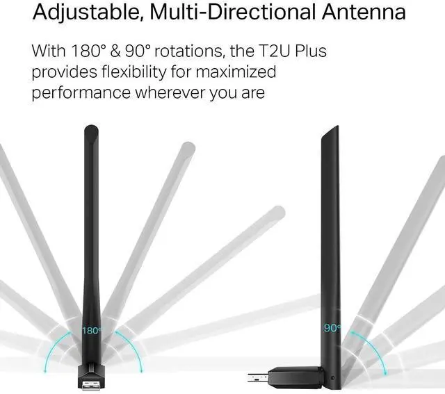 Imbedded Wi-Fi cards on laptops and desktops do not give you the ability to adjust to attain prime signal strengths. With the T2U Plus usb wifi dongle, you can rotate and adjust the antenna in multiple directions to improve user experience and performance in different environments.