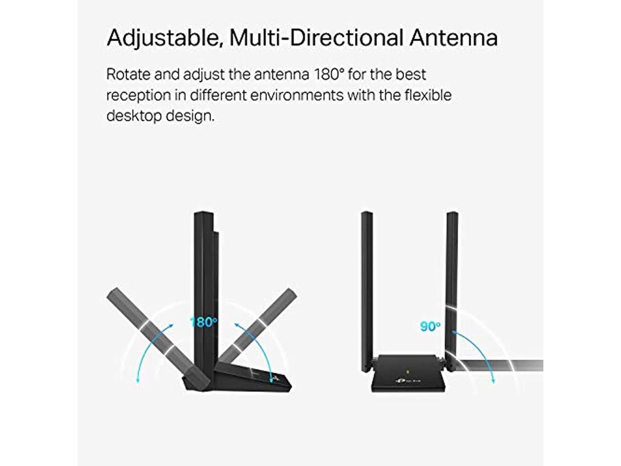 - Dual High-Gain antennas: Improved range, signal quality and transmission performance, ideal wifi adapter for desktop pc