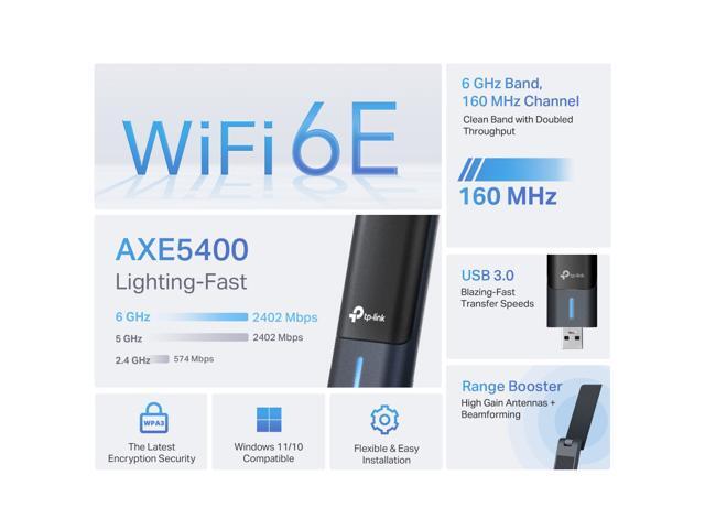 - Lighting-Fast WiFi 6E - Congestion-free speeds up to 2402 Mbps (6 GHz) + 2402 Mbps (5 GHz) + 574 Mbps (2.4 GHz)