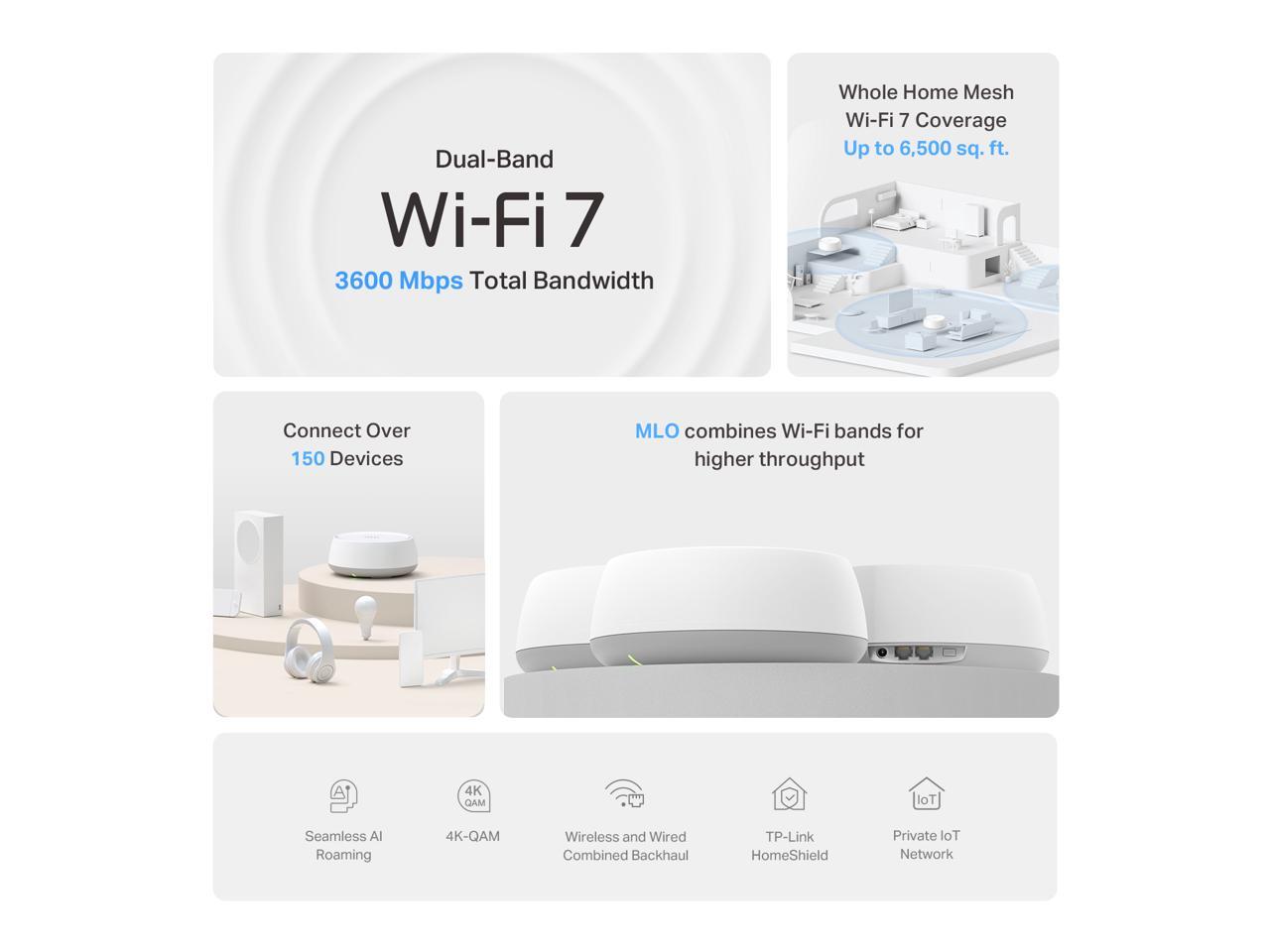 TP-Link Dual-Band BE3600 WiFi 7 Mesh Wi-Fi System (Deco BE23) | 4-Stream 3.6 Gbps | 160 Mhz Channels | Covers up to 6,500 Sq.Ft | 2× 2.5G Ports Wired Backhaul | VPN,MLO,AI-Roaming, HomeShield (3-Pack)