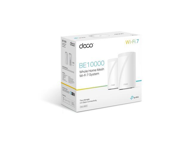 TP-Link Tri-Band WiFi 7 BE10000 Whole Home Mesh System (Deco BE63) | 6-Stream 10 Gbps | 4 × 2.5G Ports Wired Backhaul, 4× Smart Internal Antennas | VPN, AI-Roaming, MU-MIMO, HomeShield (2-Pack)