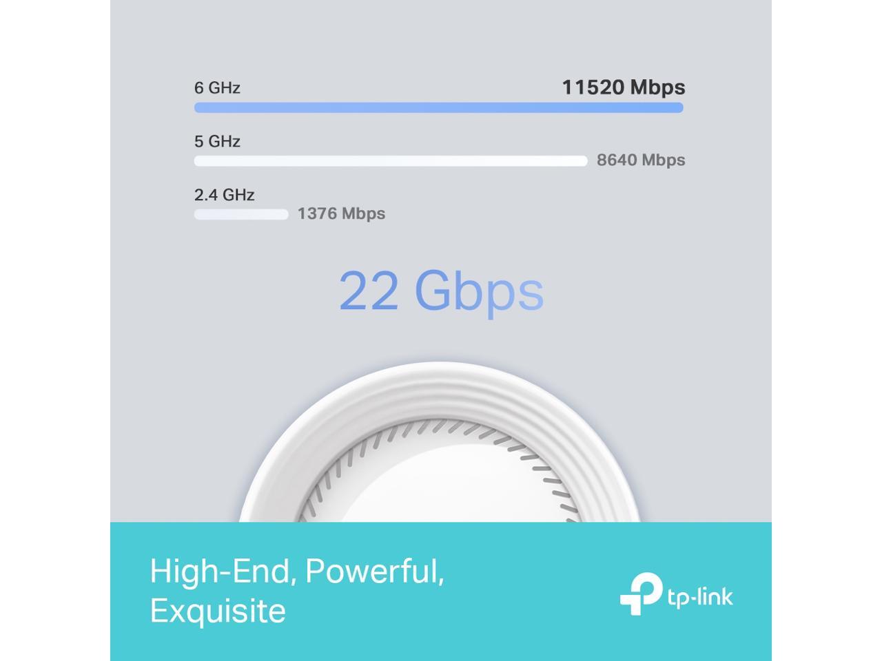 - Deco BE85 is designed with the latest Wi-Fi 7 technology, featuring Multi-Link Operation, Multi-RUs, 4K-QAM, and 320 MHz channels. With speeds of 11520 Mbps on the 6GHz band, 8640 Mbps on the 5GHz band, and 1376 Mbps on the 2.4GHz band, the 1 pack mesh connects over 200 devices without dragging down performance and delivers unparalleled Wi-Fi performance.