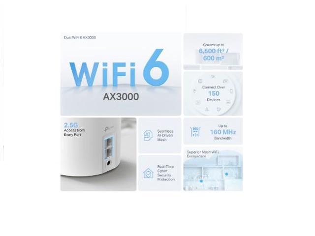 - Next-gen Wi-Fi 6 AX3000 whole home mesh system to eliminate weak Wi-Fi for good(2×2/HE160 2402 Mbps plus 2×2 574 Mbps)