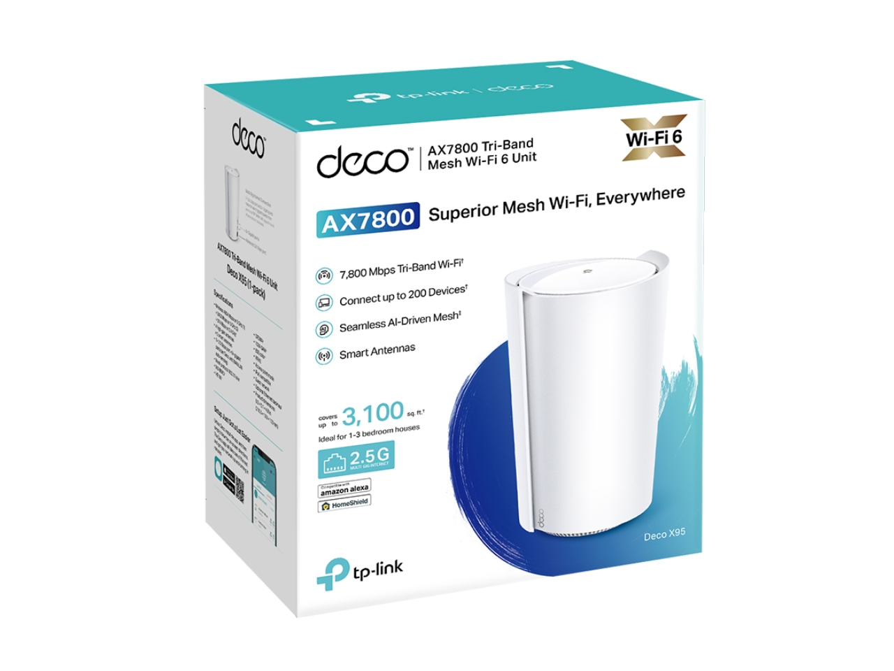 TP-Link Deco AX7800 Tri-Band Mesh WiFi 6 System (Deco X95) - Whole Home Coverage up to 3100 Sq.Ft with AI-Driven Smart Antennas, Multi-Gig Ethernet, Replaces Wireless Router and Extender (1-Pack)