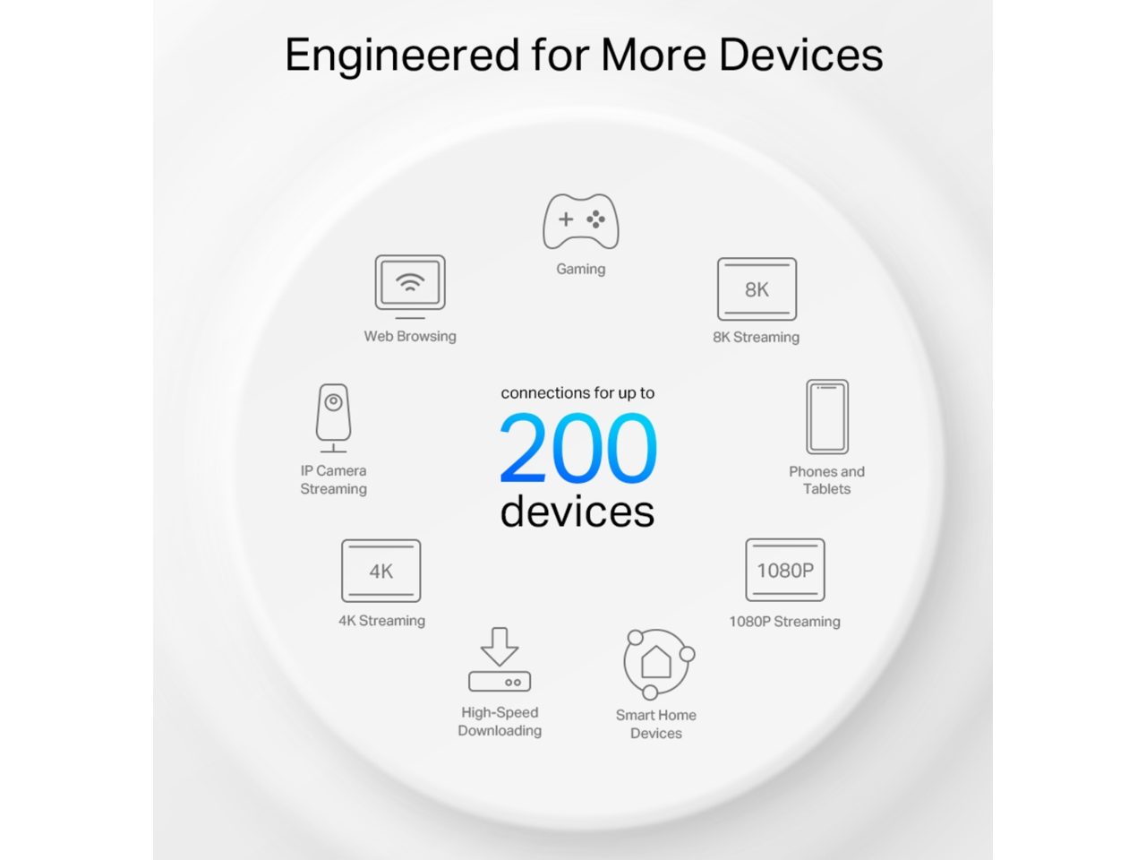 - True Tri-Band Speed – All three Wi-Fi bands work together to unleash your network’s total speeds up to 5,400 Mbps for 200 devices