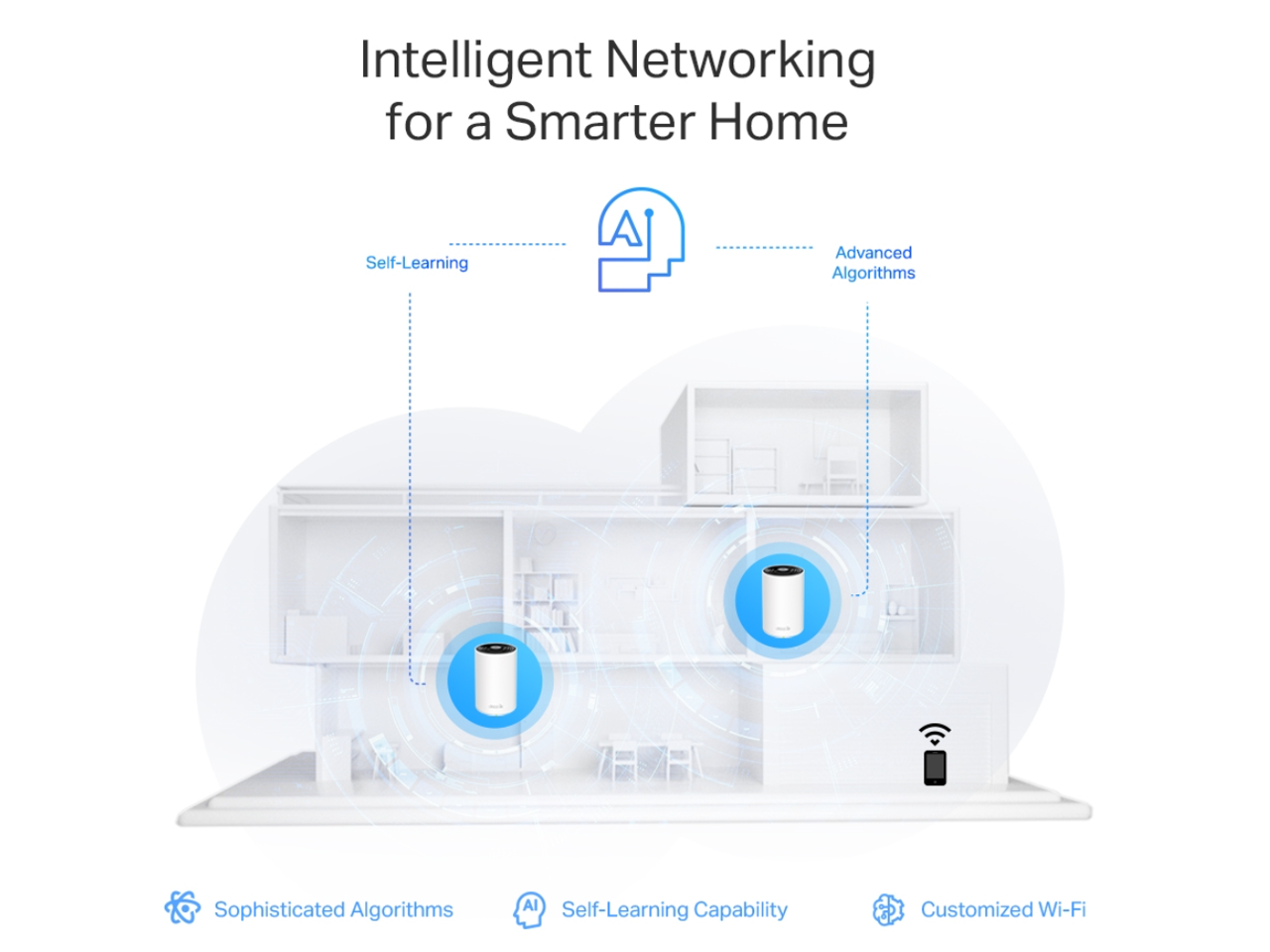 - AI-Driven Mesh – Unites your home under one name and password while delivering the best connections as you move room to room