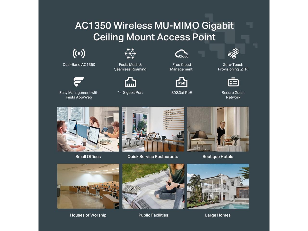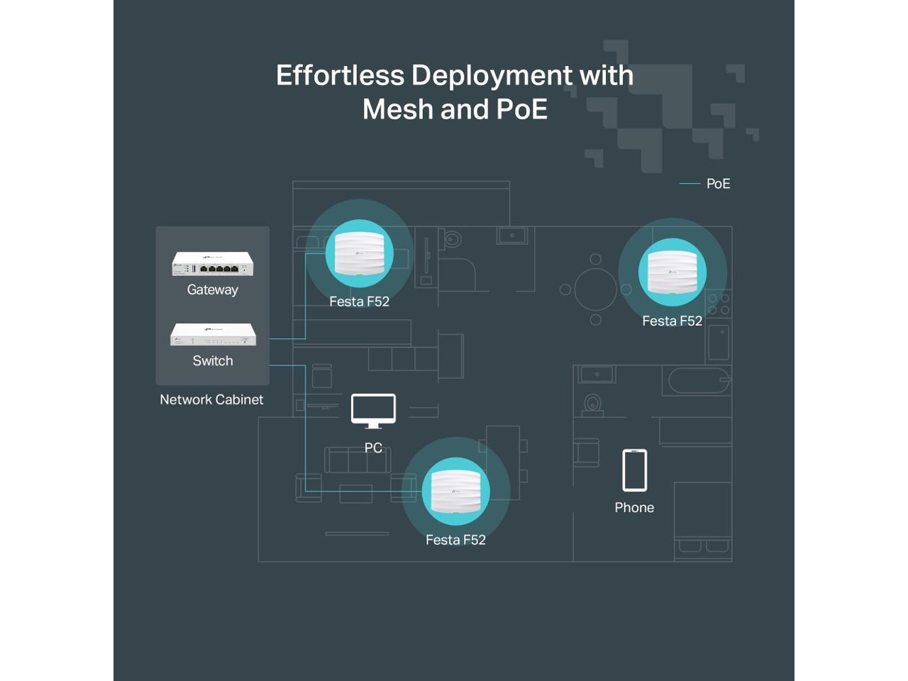 TP-Link Festa F52 Wireless Access Point AC1350 Gigabit Port Mesh, Seamless Roaming, MU-MIMO, Self-Organizing Network Free Cloud Management PoE Powered, Does not Work with Omada