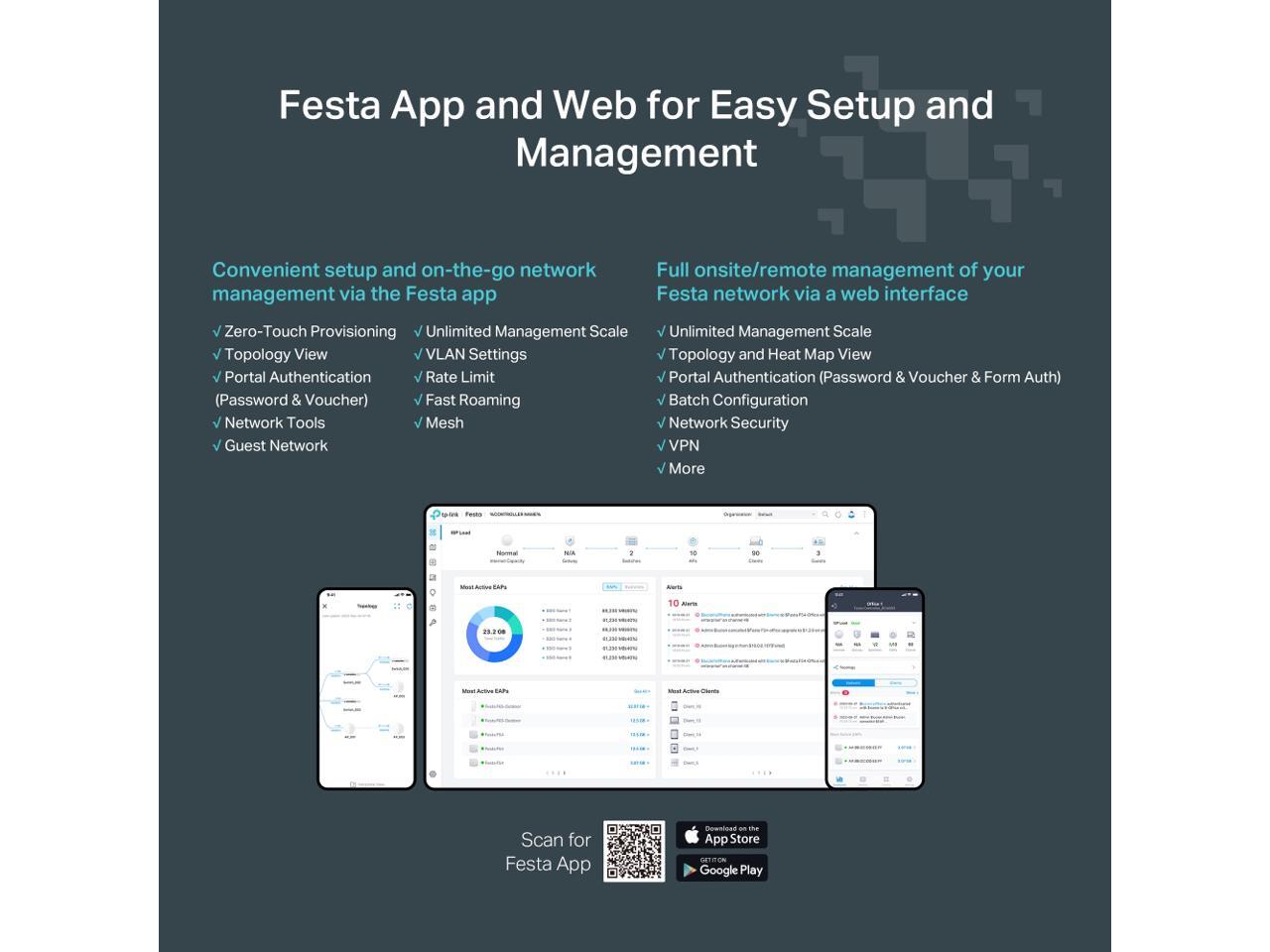 - Free cloud centralized management via the Festa app or the web†