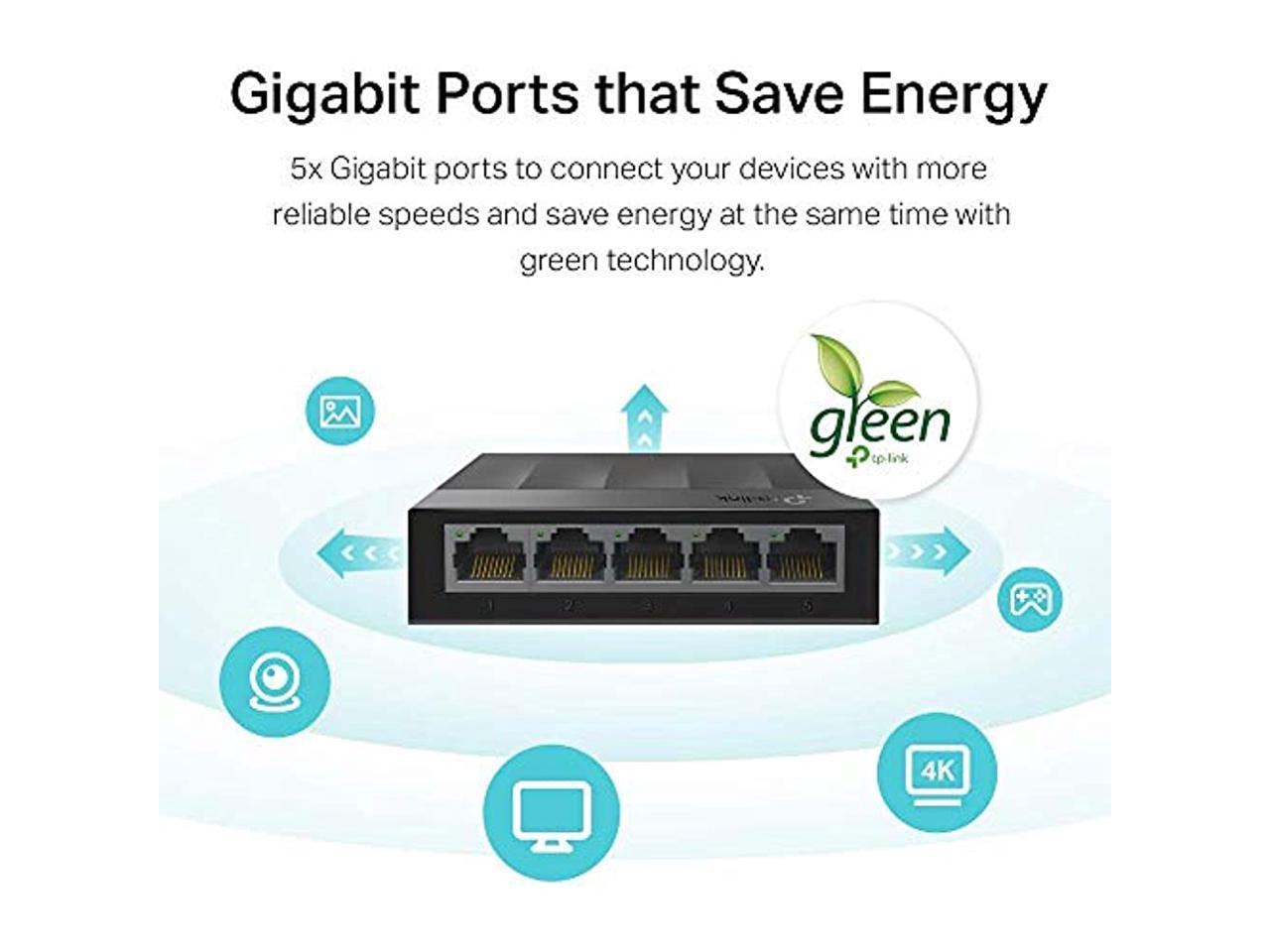 - 5 Gigabit Ethernet Ports 5x 10/100/1000Mbps Auto-Negotiation RJ45 ports supporting Auto-MDI/MDIX greatly expand network capacity