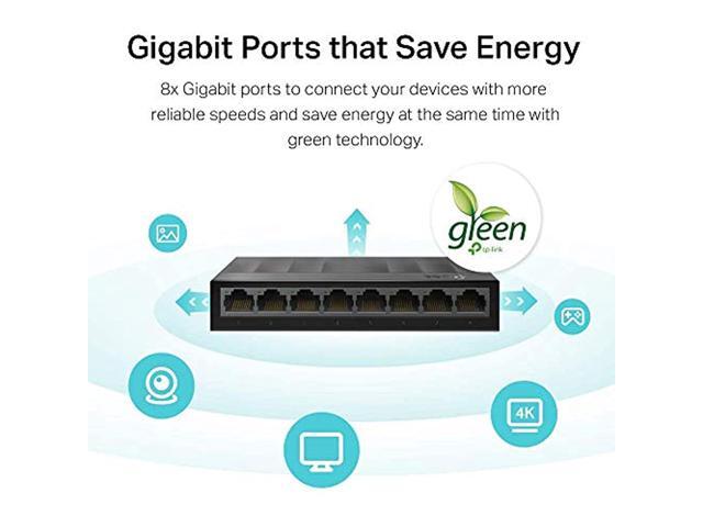 TP-Link Litewave 8 Port Gigabit Ethernet Switch | Desktop Ethernet Splitter | Plastic Case | Unshielded Network Switch | Plug & Play | Fanless Quiet | Unmanaged (LS1008G)