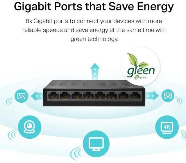 The TP-Link LiteWave Series Unmanaged Switches provide easy and affordable ways to expand your wired network. They are easy to use and reliable. With these plug-and-play switches, you can expand your network connections to multiple devices instantly without worrying about the type of cable to use.