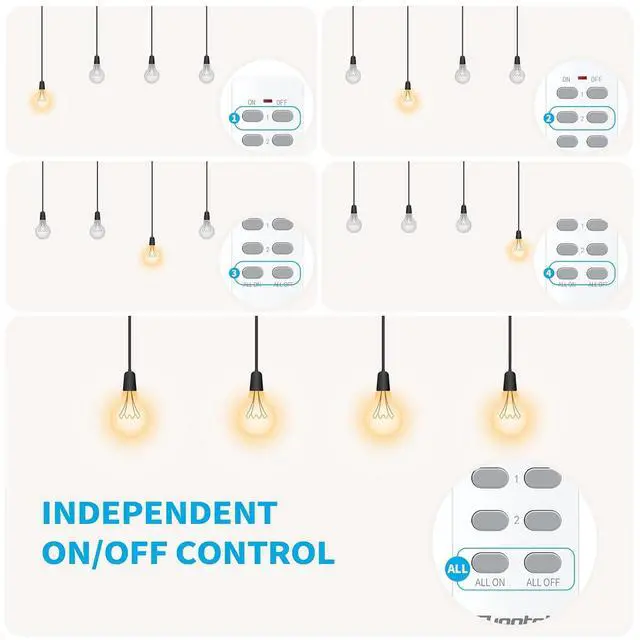 Utilize a single remote to independently control each socket and manage multiple outlets according to your needs.