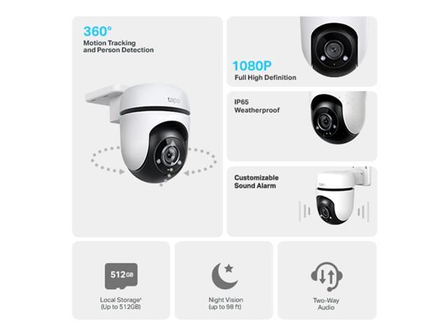- [Flexible Storage Options - Local & Cloud] Choose between secure local storage with up to a 512 GB microSD card (not included) or opt for our Tapo Care subscription plan. Enjoy 30 days of video history, activity notifications with snapshots, manual clip recording, and video sharing - all for added peace of mind and convenience.