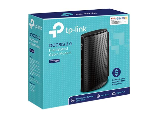 TP-Link DOCSIS 3.0 (24x8) High Speed Cable Modem | Great for Cable Internet Plans Up to 500 Mbps | Certified for Comcast XFINITY, Spectrum and More (TC7650)