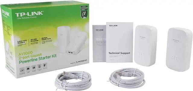 TP-LINK TL-PA7020 KIT HomePlug AV2 MIMO AV1000 2 –Port Gigabit Powerline Starter Kit, up to 1000 Mbps