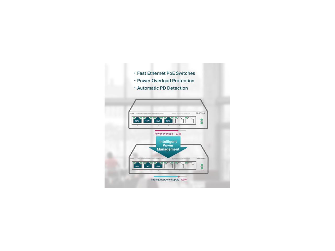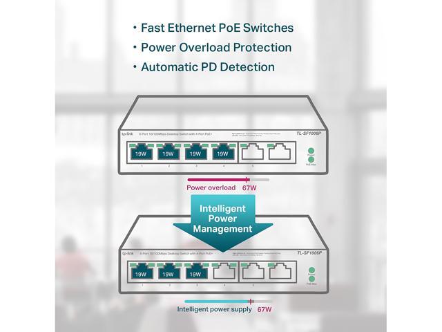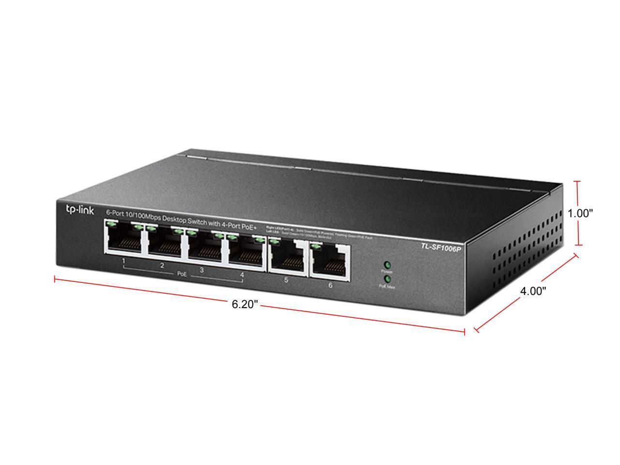 TP-Link 6 Port Fast Ethernet 10/100Mbps PoE Switch | 4 PoE+ Ports @ 67W | Plug & Play | Sturdy Metal w/Shielded Ports | Limited Lifetime Protection | Extend Mode | Priority Mode (TL-SF1006P)