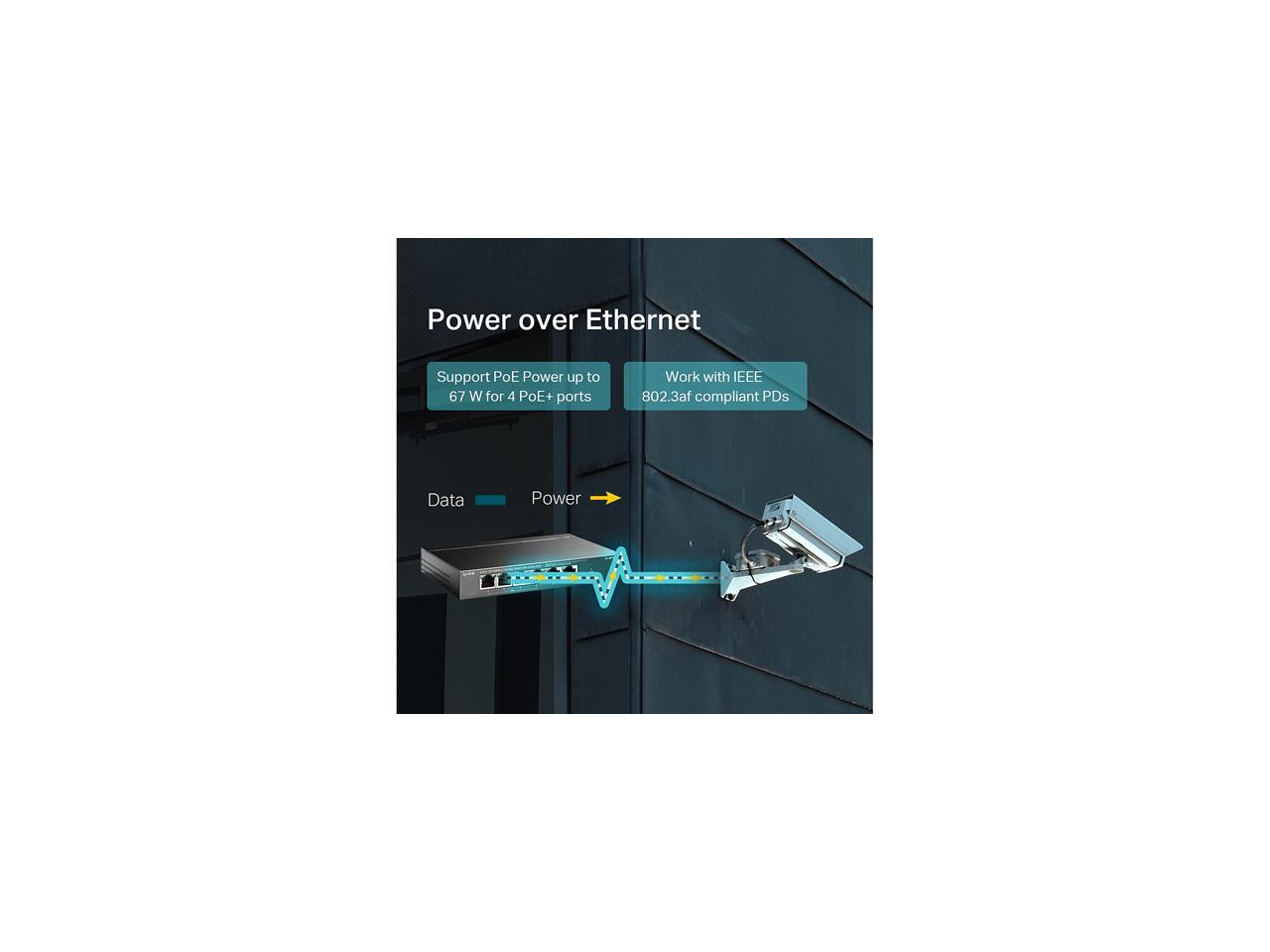 - Power Over Ethernet - 4 x PoE+(802.3at/af) ports providing up to 30W per port, total PoE budget 67W