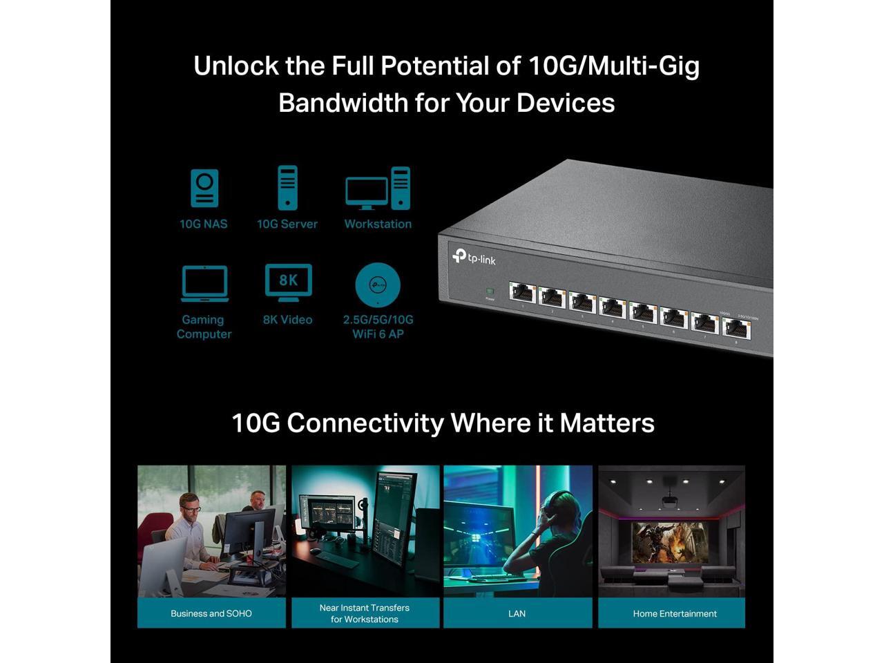 - Eight 10Gbps Ports for Lightning-Fast Connections:8× 10-Gigabit ports unlock the highest performance with 10G/multi-gig bandwidth and provide up to 160 Gbps of switching capacity.