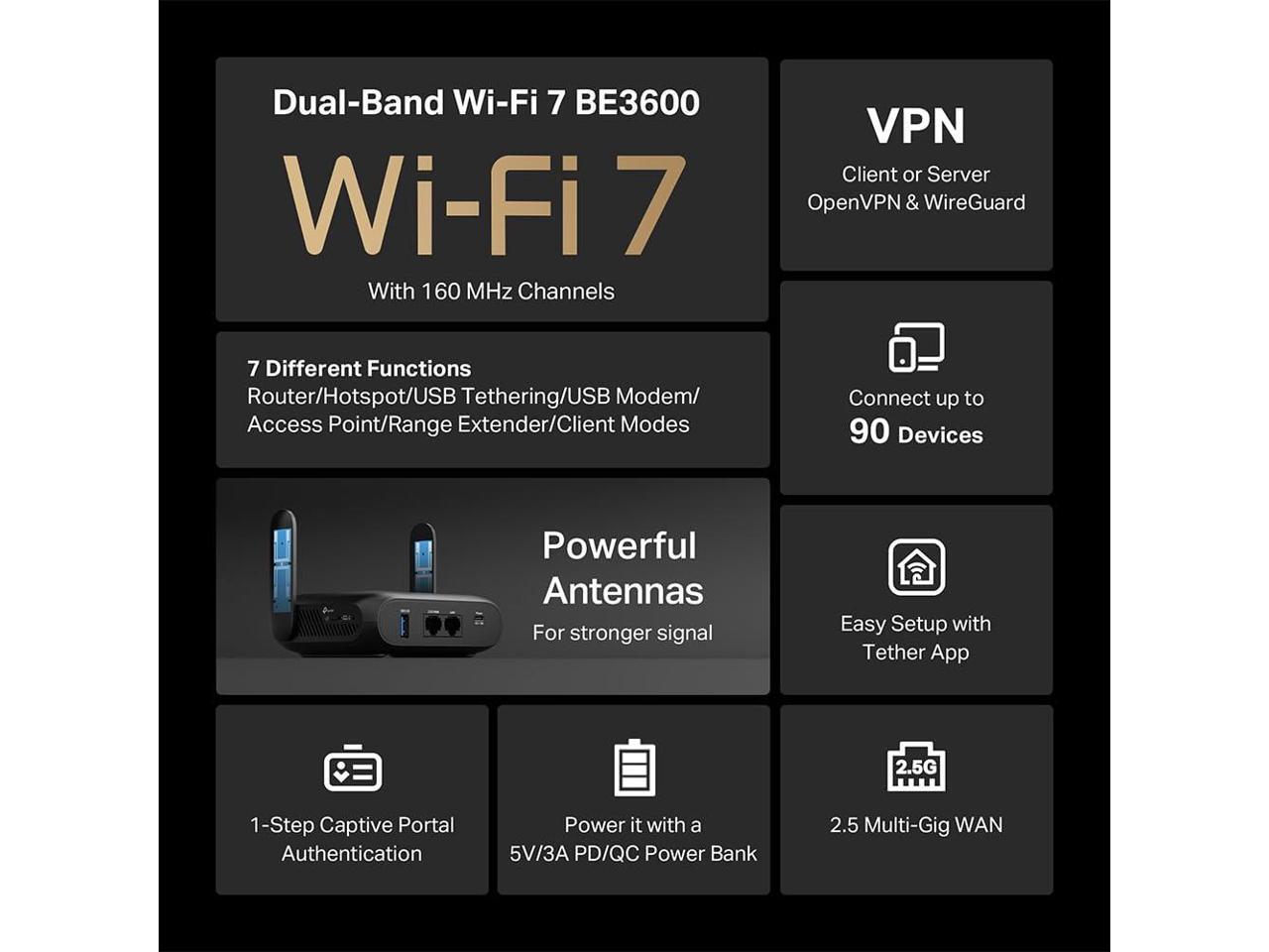 TP-Link TL-WR3602BE BE3600 Dual-Band Wi-Fi 7 Travel Router