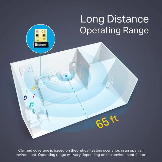 With a transmission distance of up to 65 ft, you can enjoy music, print documents, and so much more from your Bluetooth-enabled devices without hovering around your computer.*