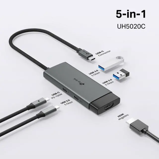 The self-storing design not only protects the port, but also improves portability. Aluminum alloy case and braided cable make UH5020C more durable.
