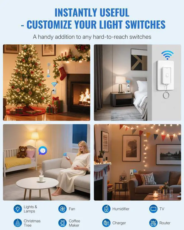 It's FCC certified,ensuring safe usage and durability.Living with our solid switch with intuitive click,now you just click on/off for wireless control