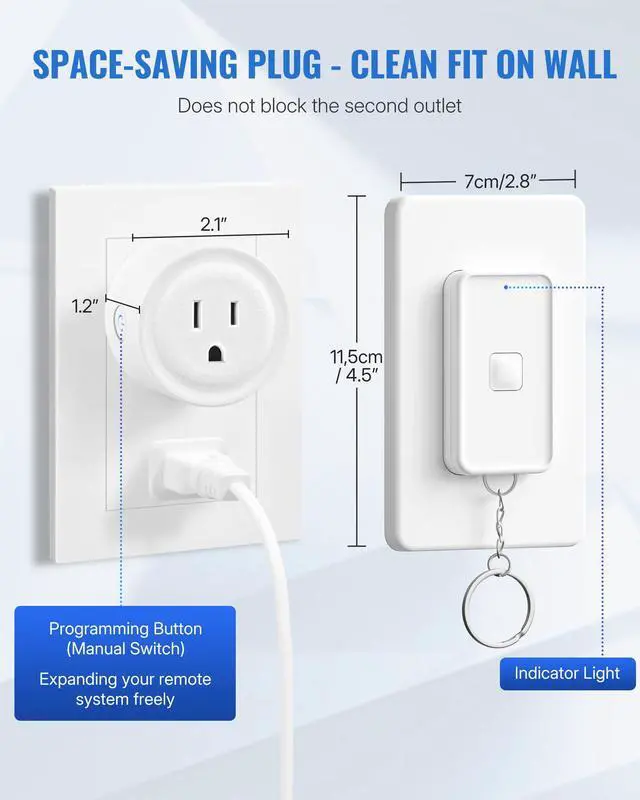 WILAWELS Remote Control Outlet Wireless Light Switch - Plug and Play