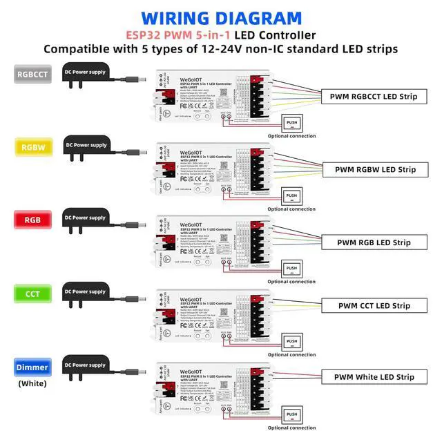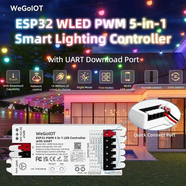 WeGoIOT ESP32 WLED PWM 5-in-1 Smart Lighting Controller