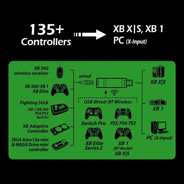 | Support Game Controllers | Support Wirelessly : XB Series X/S, XB One, Elite Series 2, PS5/PS4/PS3, Switch Pro; Support USB Wired: XB Series X/S, XB One, XB Elite1&2 on XB Series X/S, XB One Gaming Consoles. Please visit our website to check the FULL Controller Compatibility of XB 3. |