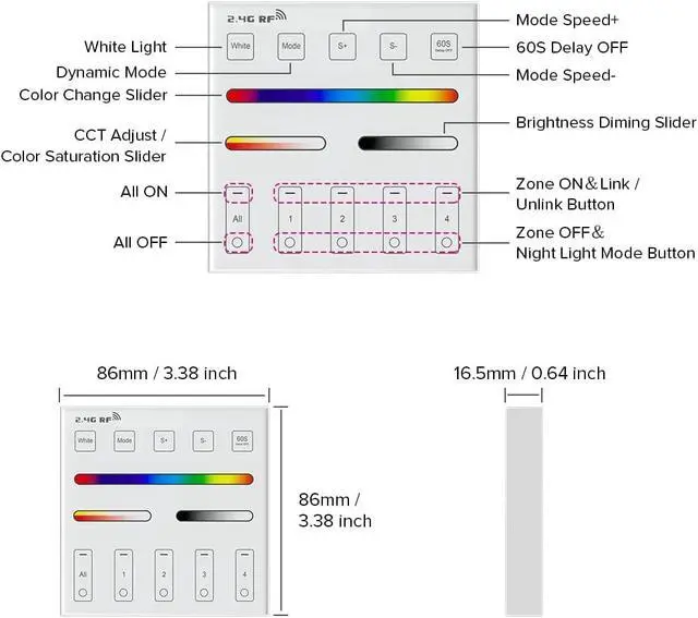- Product Name: 4 Zone RGB , RGBW and RGBCCT Panel Remote Controller.