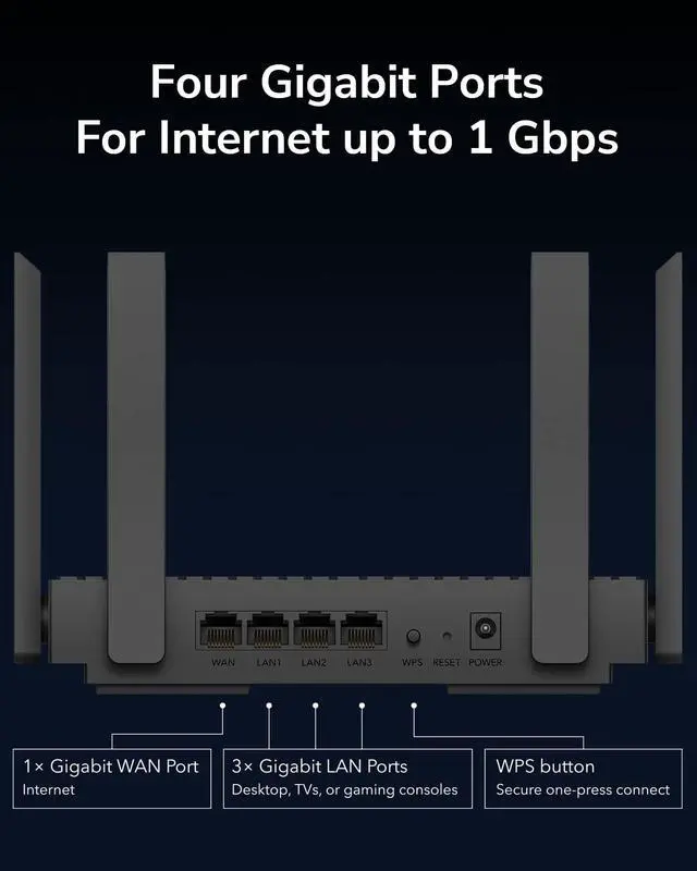 Equipped with Wi-Fi 6, WR3000 boasts the highest 160 MHz bandwidth and 1024-QAM to reach up to 3 Gbps speeds, which is more than 2.5X faster than the last-gen AC 2x2 WiFi router.
