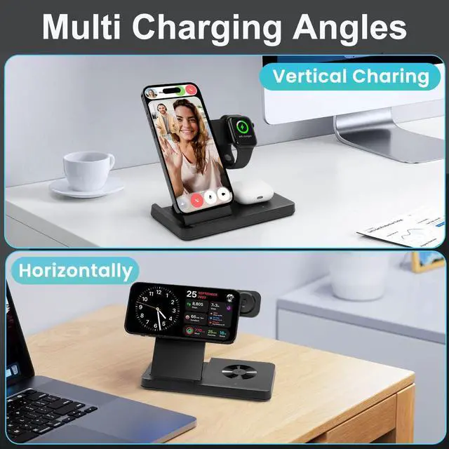 Introducing the 3 in 1 wireless Charging Station - A iPhone watch charging station Like No Other,the wireless charger iPhone for all your Apple devices. This innovative iPhone charging station, phone charging stands, and wireless phone charging stand is a game-changer in charger station technology. Our 3 in one charger iPhone watch and airpods design keeps your devices organized and powered up with ease. Say goodbye to iPhone and watch charging station and hello to our 3 in one charger iPhone watch and airpods. Featuring a stylish and compact design, this iPhone watch charger is the ideal charging stand for iphone watch and iPhone. It's not only an iphone watch and phone charging station but also a convenient spot for your AirPods. This iphone wireless charging station for apple products ensures a seamless charging experience for all your gadgets. Apple wireless charger & apple charger station are now a thing of the past! Our iPhone wireless charger fast charging & cargador inalámbrico para iPhone doubles as a cell phone charging stations and an iPhone and watch charger. The phone charger station and iPhone watch charger components ensure your watch stays powered, while the wireless phone charger iPhone & charging station for apple devices keeps your iPhone ready for action. Our apple multi charging station design features a wireless charging stand charging system, ensuring speedy charging for your phone. The charging stand for apple watch and iPhone component caters to your every need, with wireless charging stand and iPhone charger station. Experience the future with our iphone watch and iPhone charging stand system, which works as an charging station for apple, iPhone stand charger, and cell phone charging stations. This iphone watch charger station is compatible with all the latest iPhone models and iphone watches. Our iwatch and phone charger is the ultimate iPhone and A