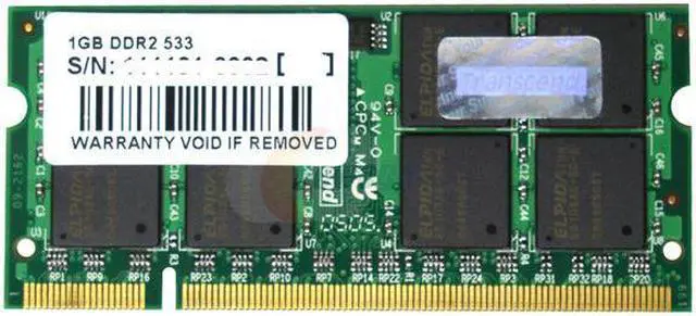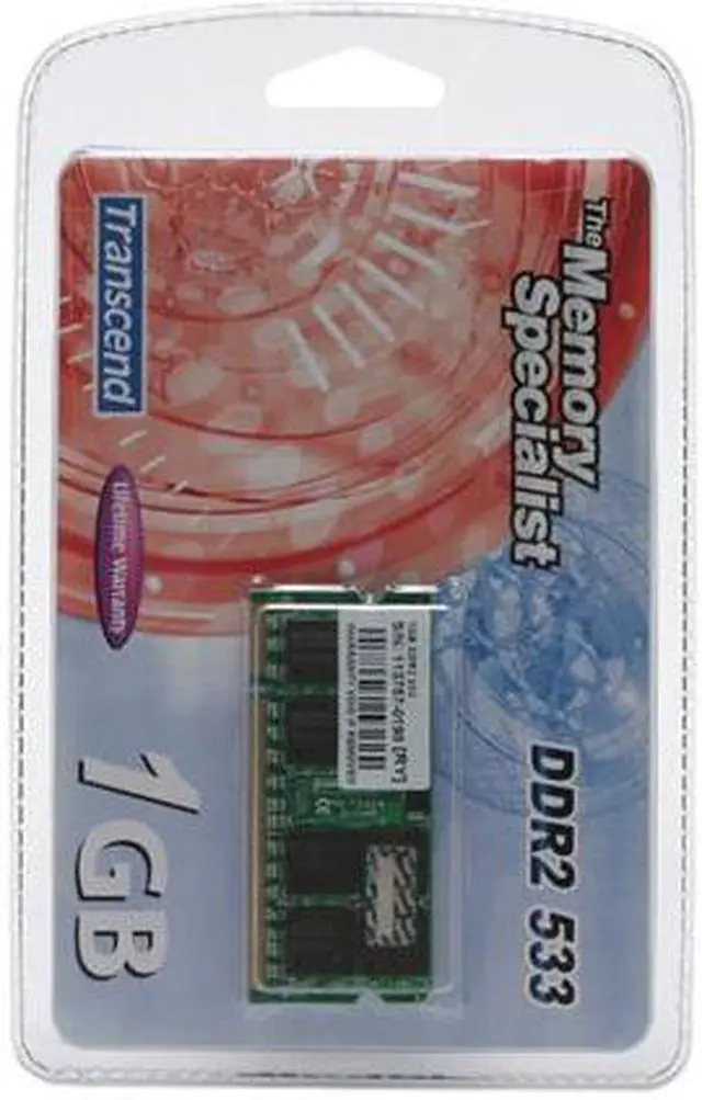 MAIN OVERVIEW FEATURES: Memory Size: 1 GBMemory Technology: DDR2 SDRAMNumber of Modules: 1 x 1 GBMemory Speed: 533 MHzMemory Standard: DDR2-533/PC2-4200Error Checking: Non-ECCSignal Processing: UnbufferedDevice Supported: NotebookNumber of Pins: 200-pinForm Factor: SoDIMMThickness: 39.4 milWidth: 1.2"Length: 2.7"Environmentally Friendly: YesEnvironmental Certification: RoHSLimited Warranty: Lifetime
