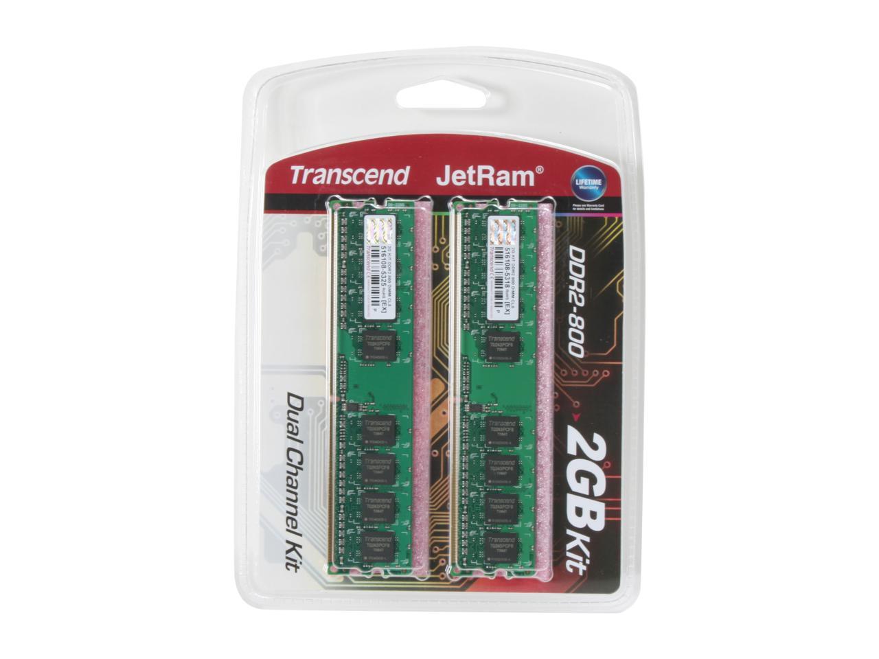 Transcend JETRAM 2GB (2 x 1GB) 240-Pin DDR2 SDRAM DDR2 800 (PC2 6400) Dual Channel Kit Desktop Memory Model JM2GDDR2-8K