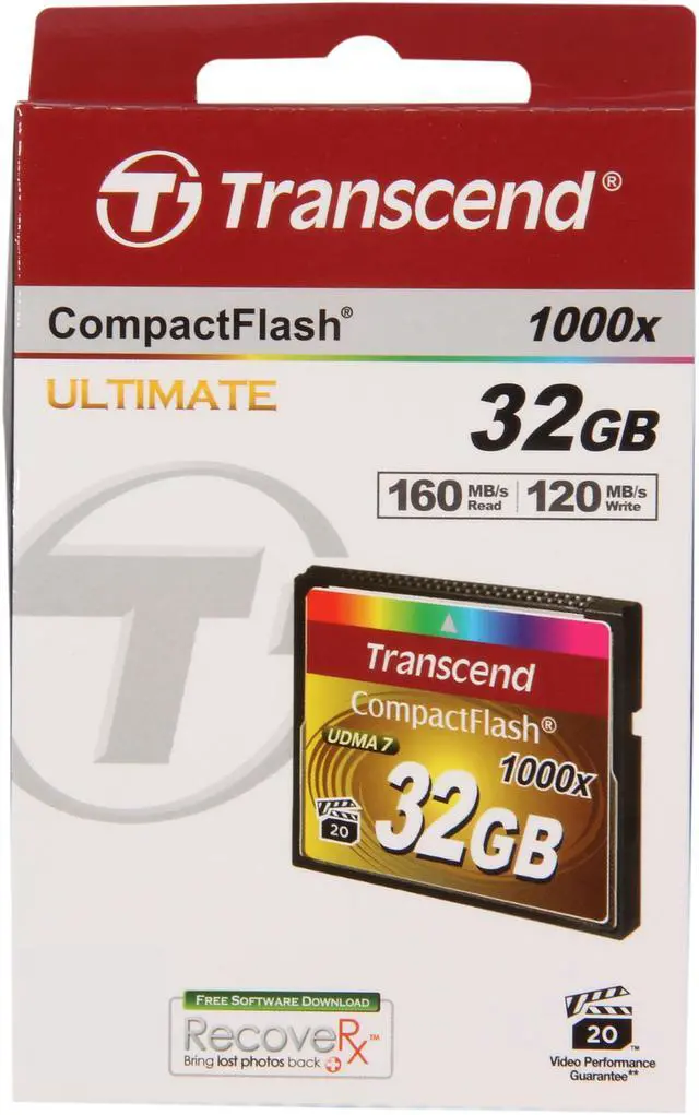 To ensure high-quality image and video capture using today's cutting-edge digital equipment, Transcend's 1000x CompactFlash memory cards support the CompactFlash 6.0 specification, which offers incredible high-speed performance and vast storage space. Additionally, the "Ultimate" series 1000x CompactFlash cards implement the Video Performance Guarantee (VPG-20) to enable professional-quality video recording without dropping frames, even in 3D.