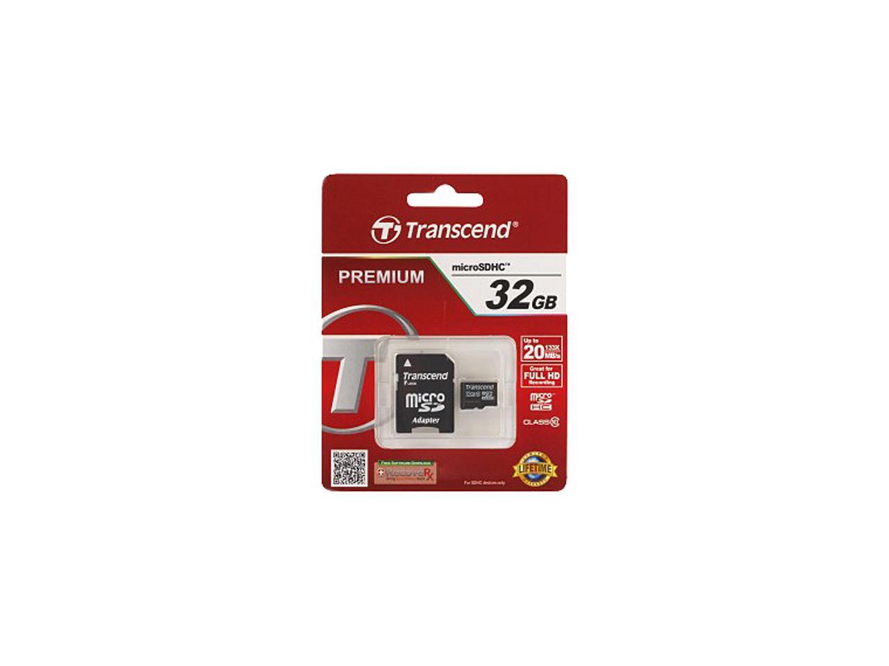 Transcend 32GB microSDHC Flash Card with Adapter Model TS32GUSDU1