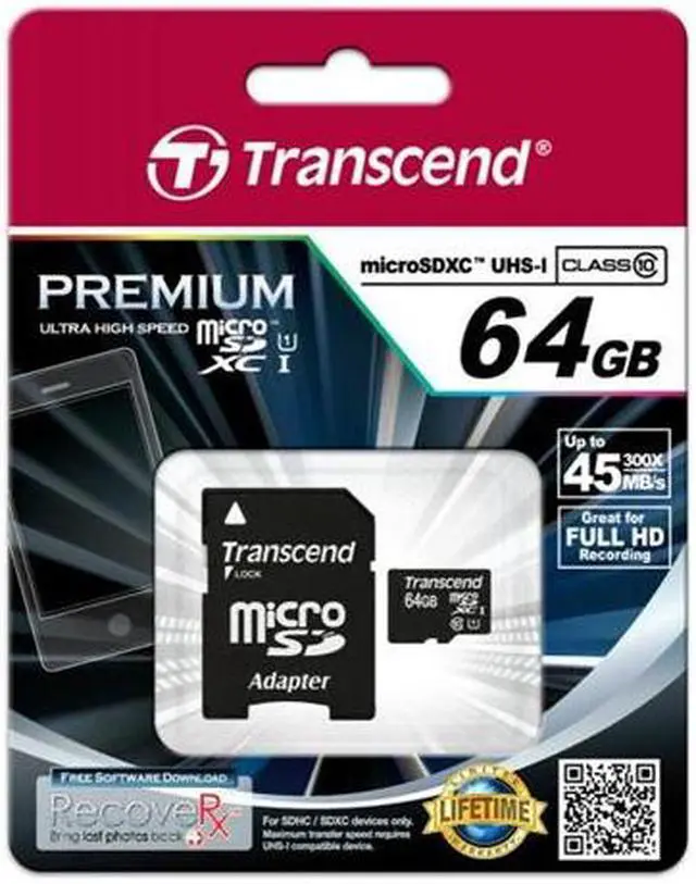 Combining next-generation Ultra High Speed Class 1 technology with extra large capacity, Transcend microSDXC UHS-I memory cards not only provide the best possible performance during a host of mobile activities but also enough storage space to carry an entire collection of personal media files.
