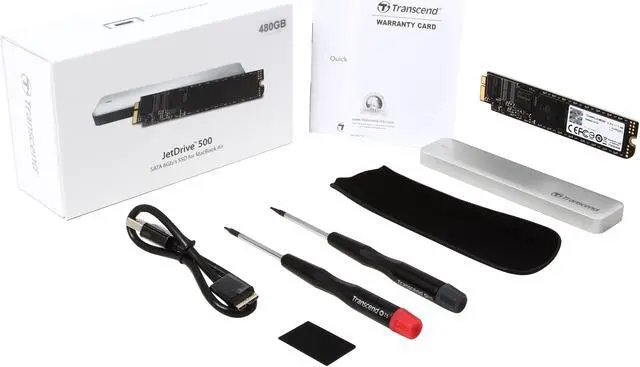 Introducing our new JetDrive SSD upgrade kits for the MacBook Air and MacBook Pro with Retina display. Complete with tools, instructions, and a slick aluminum USB 3.0 enclosure to reuse your original SSD, Transcend's JetDrive SSD upgrade kits allow you to both increase your storage space and boost the performance of your Mac®. Transcend's JetDrive SSDs are also backed by an industry-leading five-year warranty.