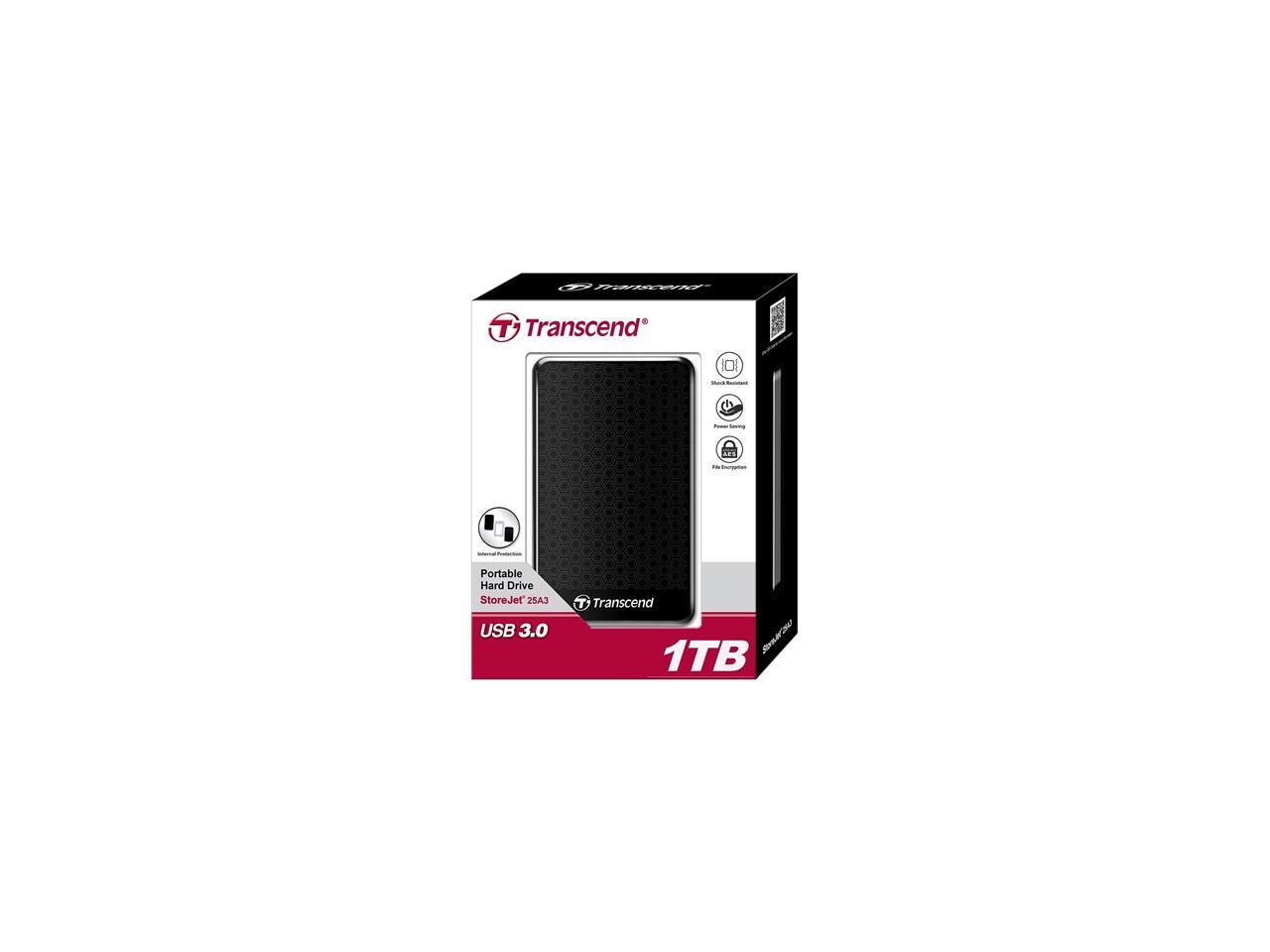 Transcend 1TB StoreJet 25A3 External Hard Drive USB 3.0 Model TS1TSJ25A3K Black