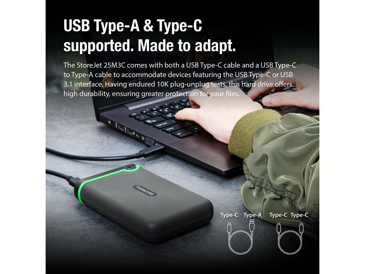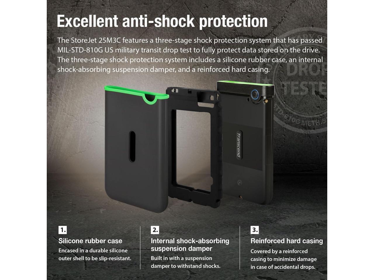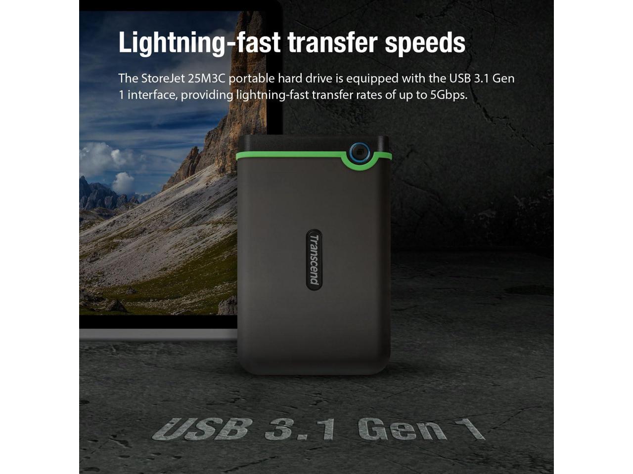 Transcend StoreJet 25M3C 2 TB Portable Hard Drive - 2.5" External - Iron Gray - USB 3.1 TS2TSJ25M3C